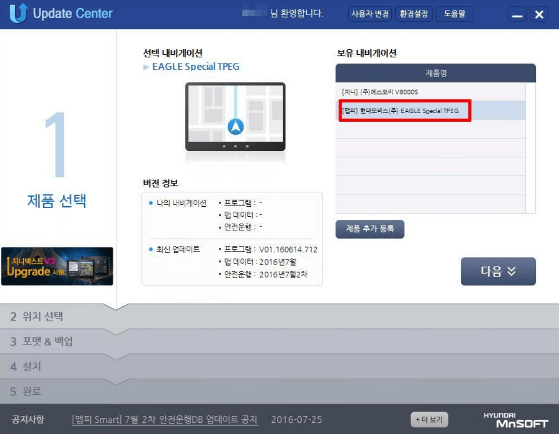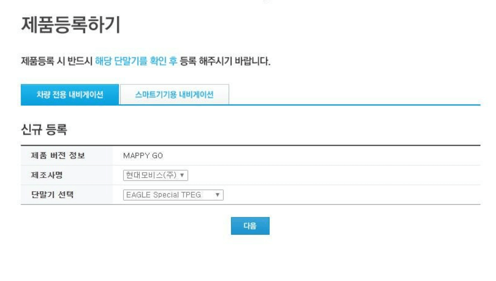mappy 지도를 업데이트하기 위해서 위에 나와있는 홈페이지에 접속해야 합니다. 그 다음, 업데이트/제품등록 메뉴를 클릭해주세요.