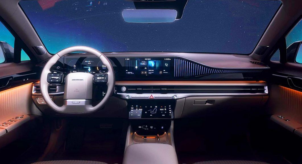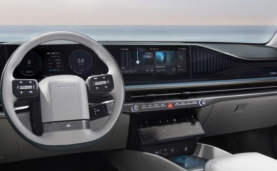 대시보드/디스플레이: 27인치 곡면 와이드 디스플레이 하나에 디지털 계기판과 인포테인먼트가 통합되어 운전 몰입감을 극대화합니다. 반응 속도 빠른 인포테인먼트 UI와 무선 업데이트 지원, 음성제어, 스마트폰 무선연동 등 첨단 기술이 집약되었습니다.