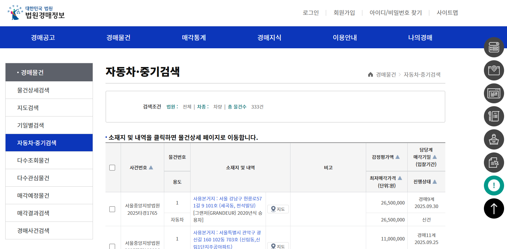 법원 자동차 경매 물건을 보려면 먼저 대법원 경매정보 사이트에 접속해야 합니다. 아래의 순서에 따라 진행해보세요.